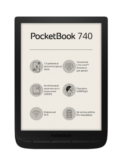 PocketBook 740 лишь немного крупнее, чем стандартные 6 дюймовые модели. PocketBook 740 на треть легче и на 3 см уже, чем предыдущие большие 8 дюймовые покетбуки. А еще PocketBook 740 оснащен самой современной подсветкой с возможностью изменения цветовой температуры. Новый двухъядерный процессор обеспечил ощутимый прирост скорости работы по сравнению с предыдущими моделями.​