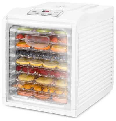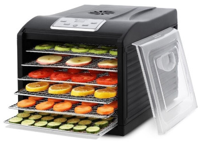 Устройство предназначено для обезвоживания овощей, фруктов и ягод. Это позволяет хранить продукты в течение долгого времени и делает прибор находкой для того, кто любит делать полезные заготовки на зиму.