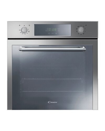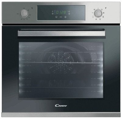 Встраиваемая электрическая духовка Candy FCP625VXL снабжена не только поворотными переключателями, но и сенсорной панелью управления с цифровым дисплеем.