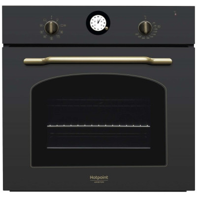 Электрический духовой шкаф Hotpoint-Ariston FVT 801 H AN HA выполнен в элегантном ретро-дизайне. Форма стекла дверцы напоминает о традиционной дровяной печи, необычная фурнитура и круглые аналоговые часы стильно выглядят. Исполнение под старину скрывает под собой современный прибор с самыми широкими возможностями по приготовлению пищи.